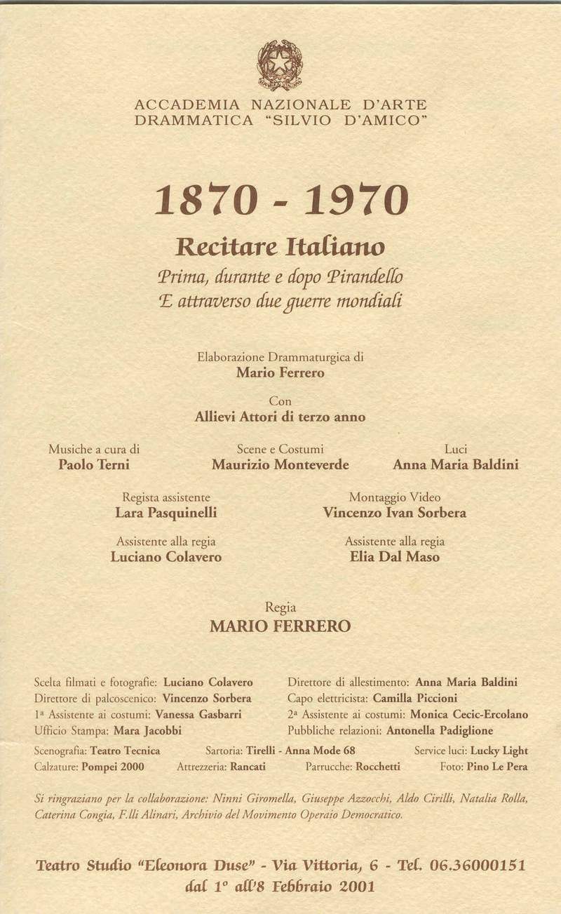 Recitare Italiano - Roma - 3/11 febbraio 2001